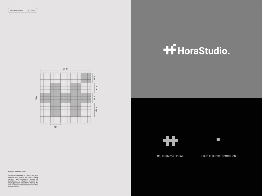 The identity centers around a symbolic H, referencing balance, structure, and a sense of passage, paired with a sun-inspired form that represents renewal, time, and inner rhythm. Together, these elements form a brand that feels reflective, modern, and serene.